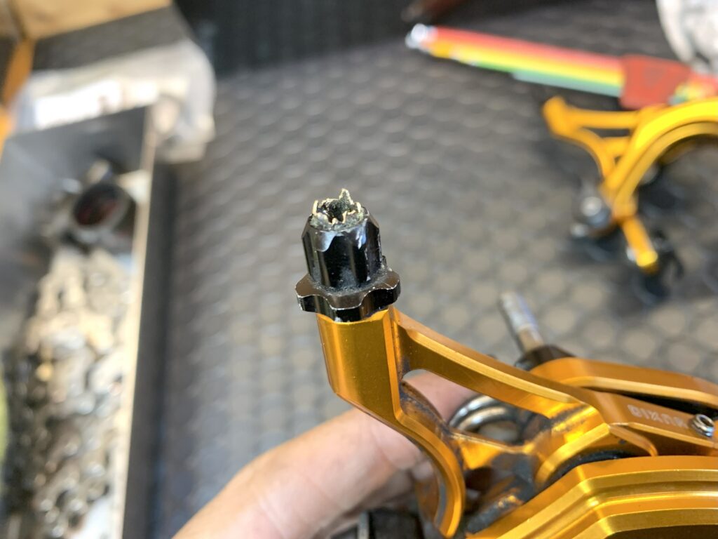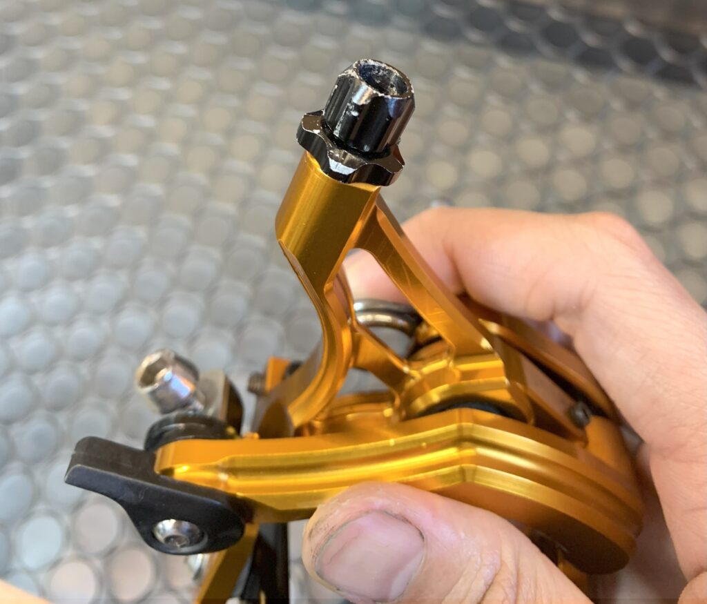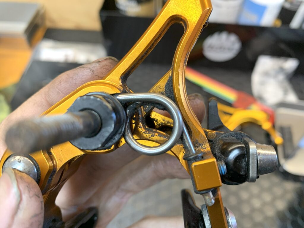 アウターキャップの救出完了!更にアジャスターの汚れを取って綺麗に!上記のような、わかりにくい場所の汚れや、あまり気にすることのない部品のダメージがたくさん!ディレーラー、クランクなども同じように細かく洗浄、チェック、注油をします。