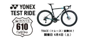 当日はヨネックスロードバイクの営業さんも滞在されますので、試乗後にルート610ラウンジであれこれ聞いちゃう事もOK!ルート610らしい有意義な試乗会とさせて頂きますので、1日と短い時間ですが、ぜひ楽しみにして頂ければと思います!!お申込み方法などは下記をご覧ください。
